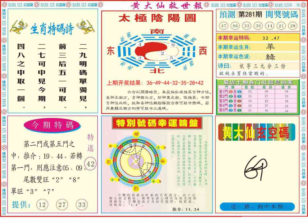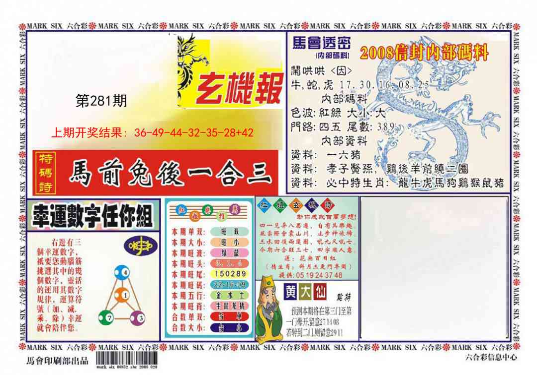 0207 黄大仙发财符 0208 另通天报