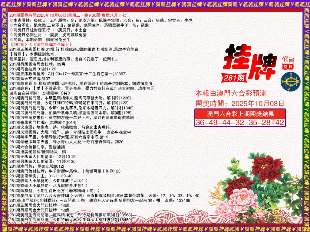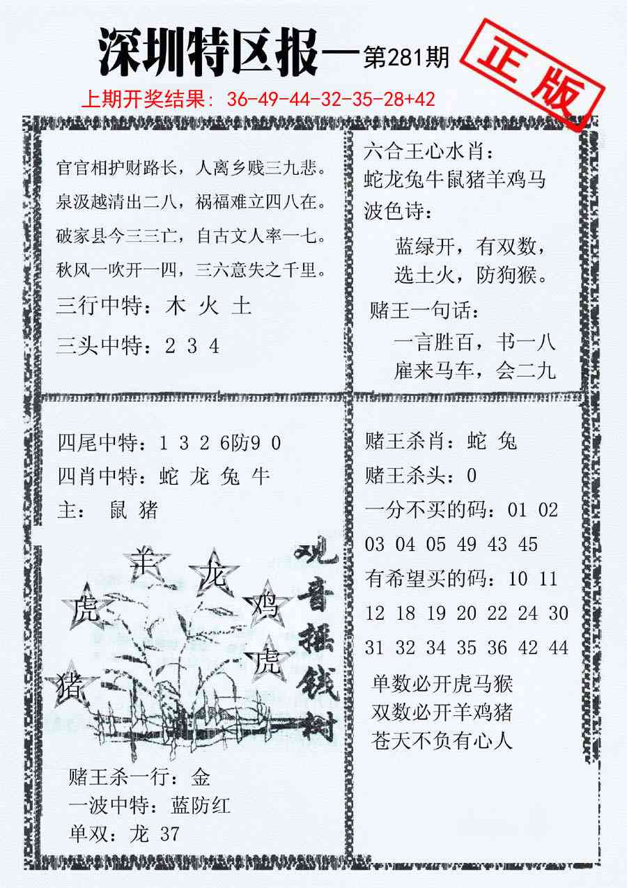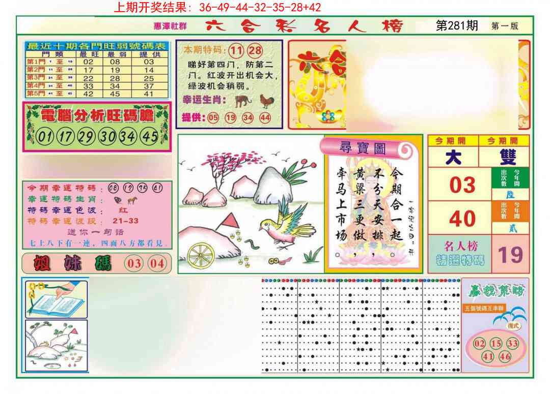 337 二代凤凰报 338 二尾四码 339 发财报 340 发财报