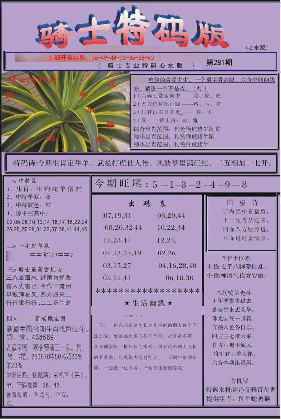 0051 六合传说(心水版) 0052 特新报
