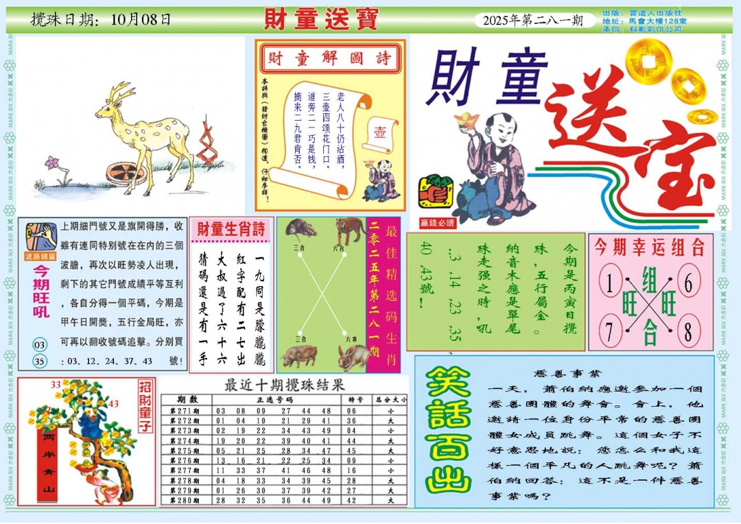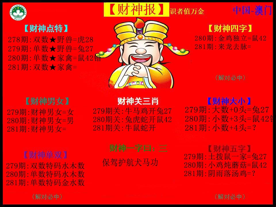 267 彩色正版澳门老鼠报 268 财神指路A 269 财神指路B 270 财童送宝A