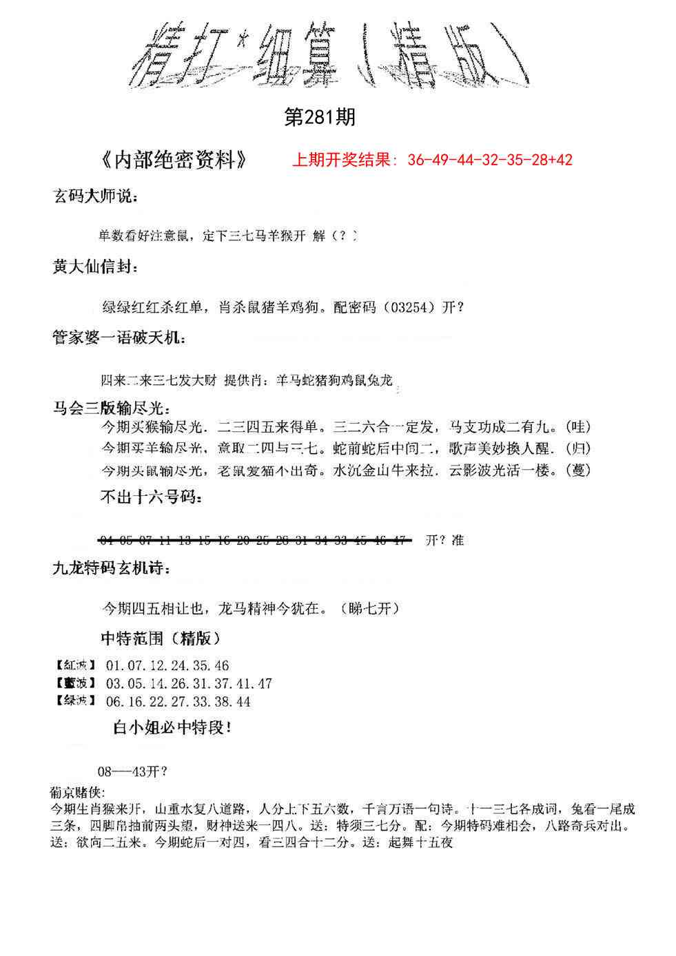 0053 特码霸王A 0054 另版内部传真