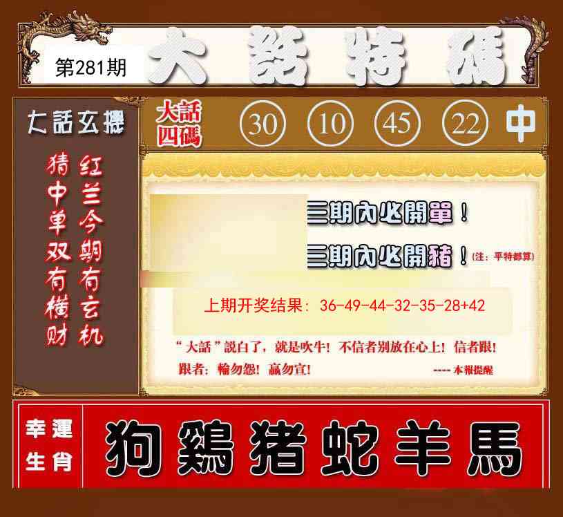 297 独家梅花来料 298 赌经神算 299 大陆报 300 大陆通天报