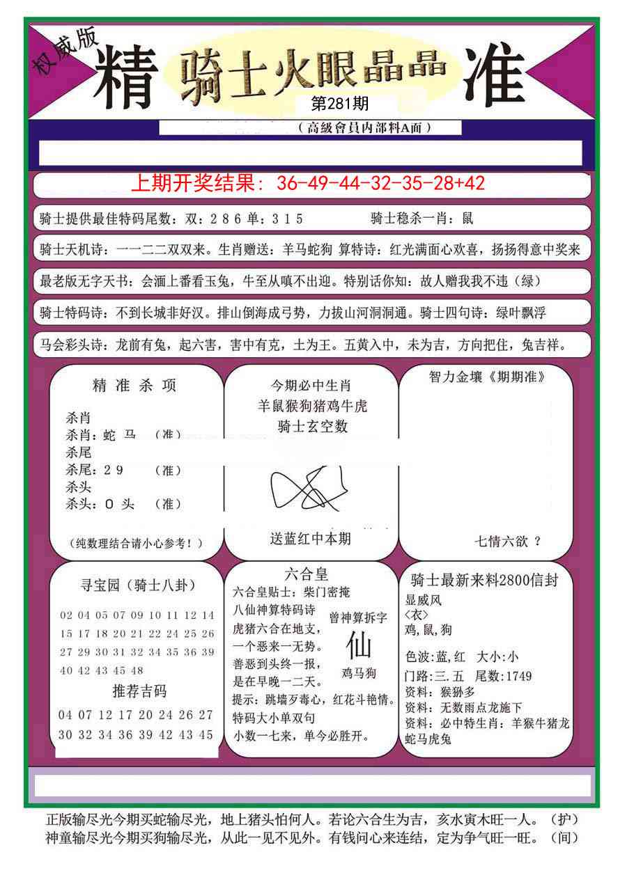 0003 白小姐龙卷风B 0004 九龍马经A(推荐)