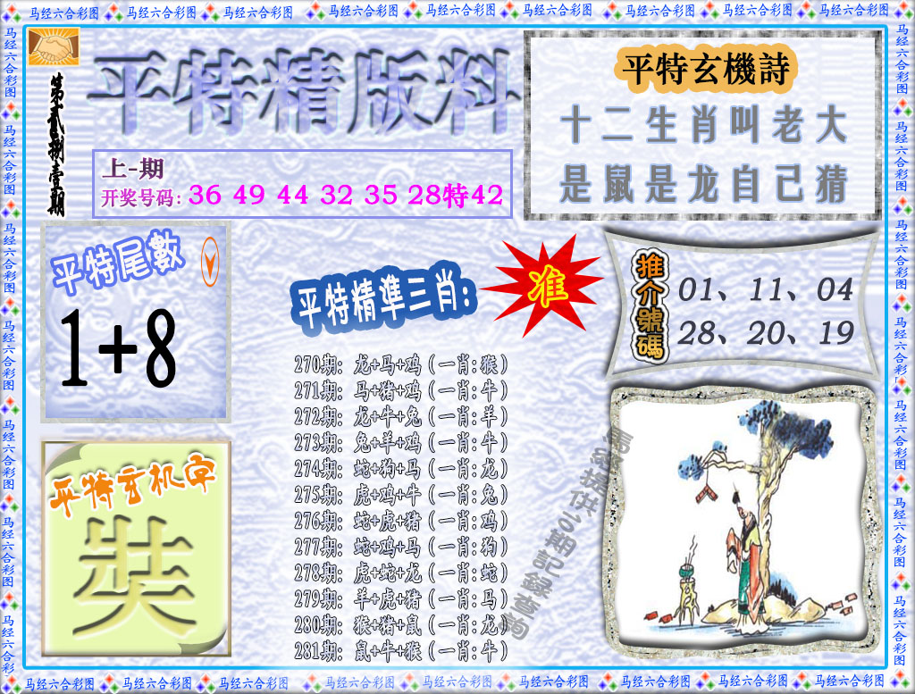 223 波行肖尾藏特图 224 八仙指路 225 八肖中特图 226 包租婆