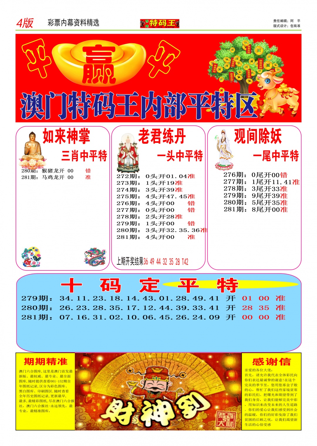 255 彩民之家 256 彩民之家A 257 财神报 258 财神到